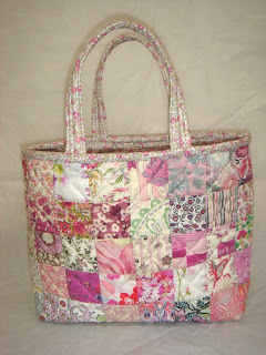 6cm角100枚のリバティの布をつなぎ合わせて作るタイプのバック。