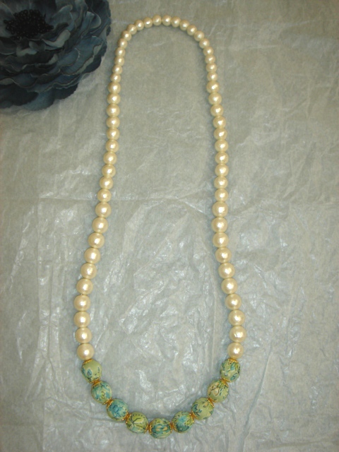 こちらはロングタイプ(約70cm)のコットンパールネックレス。