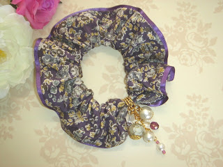 チャーム付シュシュ ¥1480 使用生地:Tatum(パープル系) |
