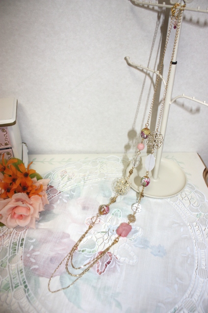ピンク系のパーツとゴールドの金具でまとめてみました。