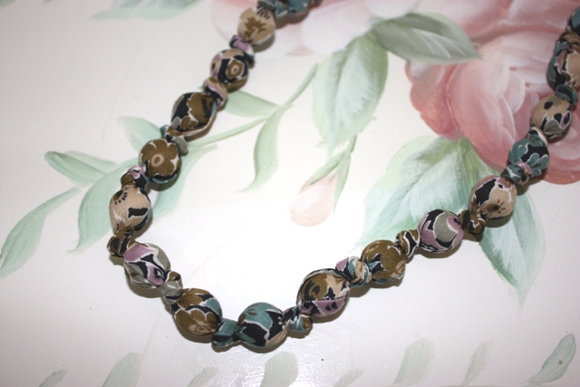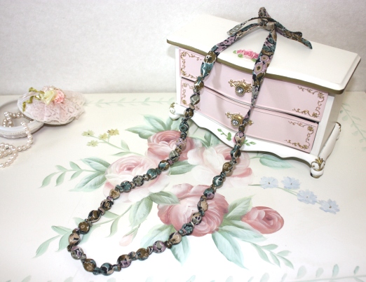私の作るネックレスは端をきっちり処理して、布がほつれてこないように工夫してあります。