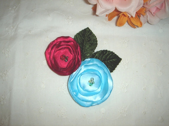 先日から何度かご紹介しているサテンのお花の応用版です。