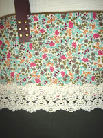 生地のつなぎ目となる部分には生成り色の幅広レースをアクセントにつけ、右下に薔薇モチーフもお付けしました。