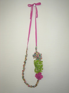 布の部分は玉を1つ1つ縛ってある形(私のお店と同様の作り方)なのですが、縫いとめる方法で同じようなネックレスを作ってみたいなぁと思っています。