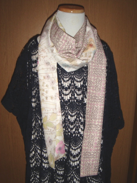 オーダーいただいた方のご希望で、初めて2つの生地を組み合せてストールを作ったのですが、巻いたときに柄が2つ混ざるのはいいですね~