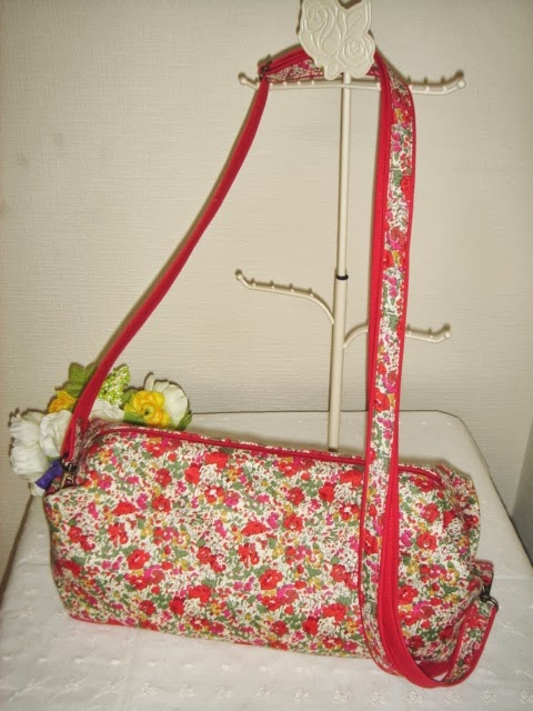 写真からは見えないのですが、内側は赤系の小さな薔薇とドットのコットン生地を使用しています(こちらはLiberty生地ではありません)。