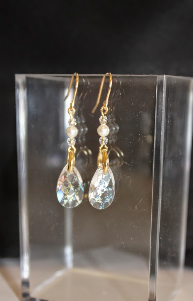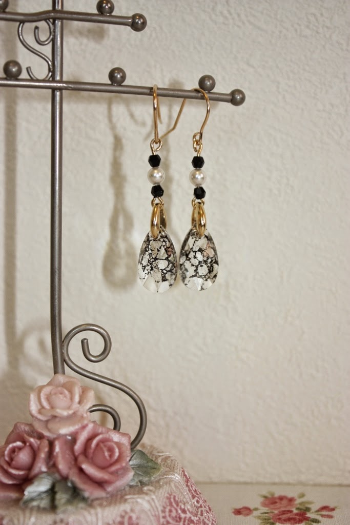 こちらにスワロフスキーのパールやストーンを合わせ、シンプルながら存在感のあるピアスに仕上げました。