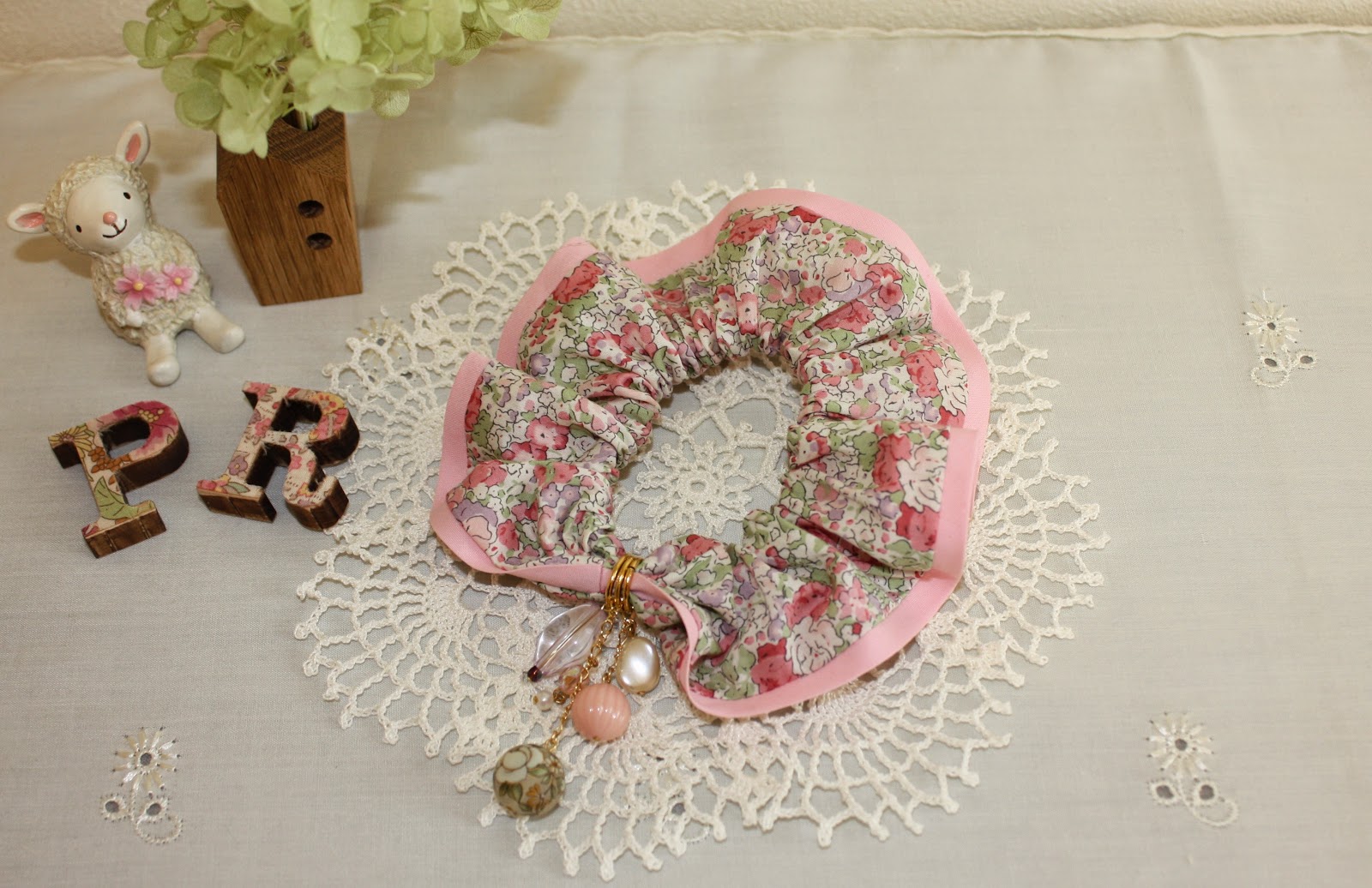 こちらはゆらりと揺れるチャームを付けたシュシュになります(取り外し不可)。