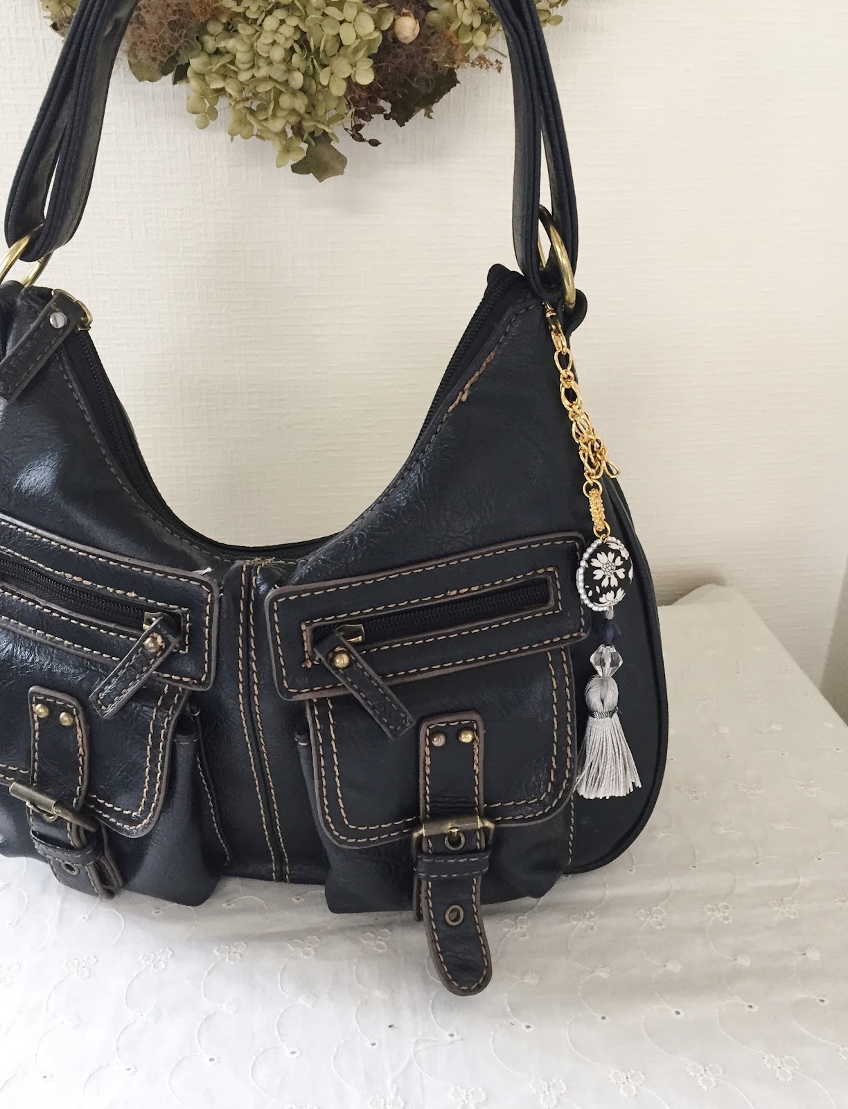 お見苦しいのですが、手持ちのバックにつけてみました。