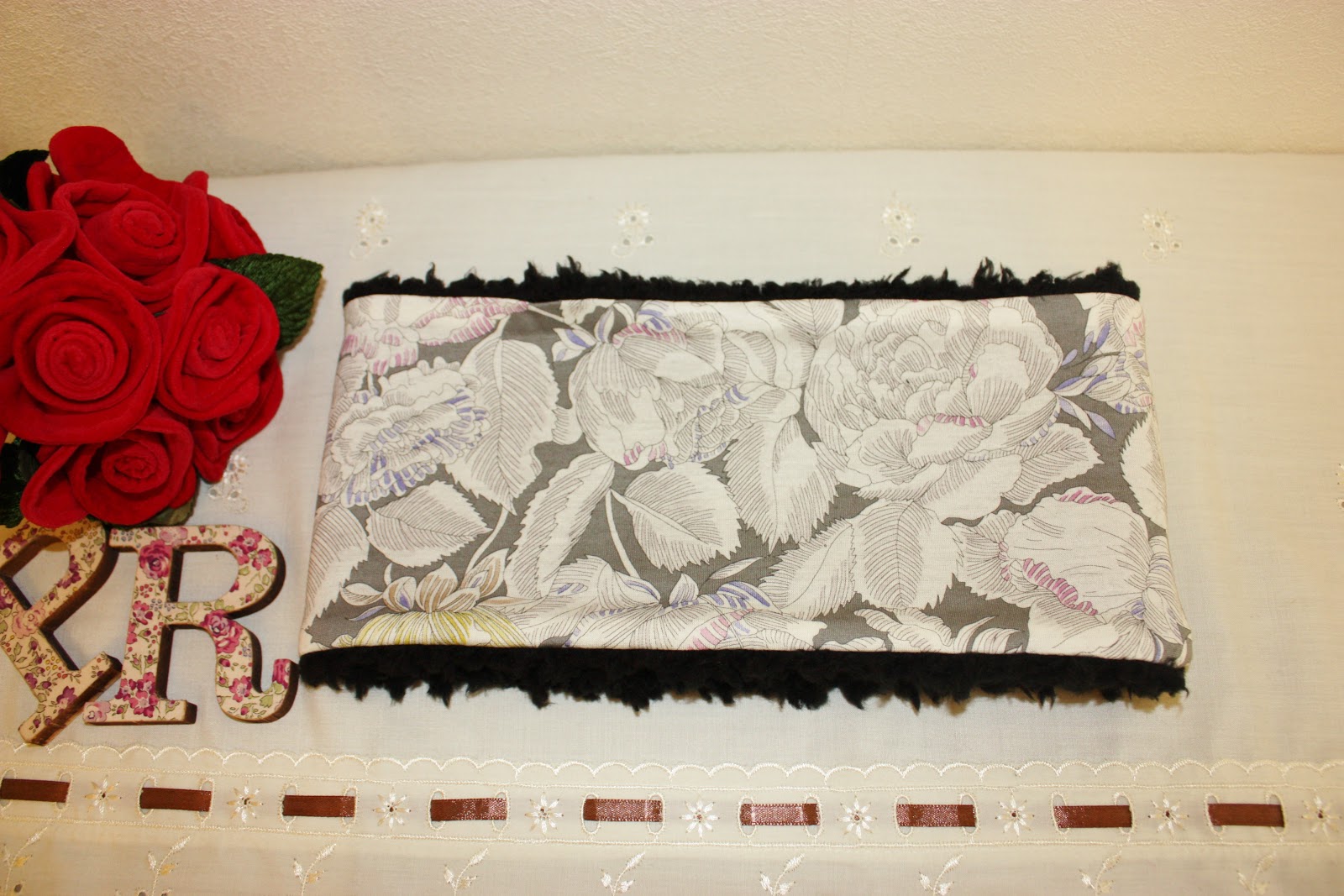 片面はプードルファー、もう片面はそれぞれタナジャージのリバティ生地を使用しています。