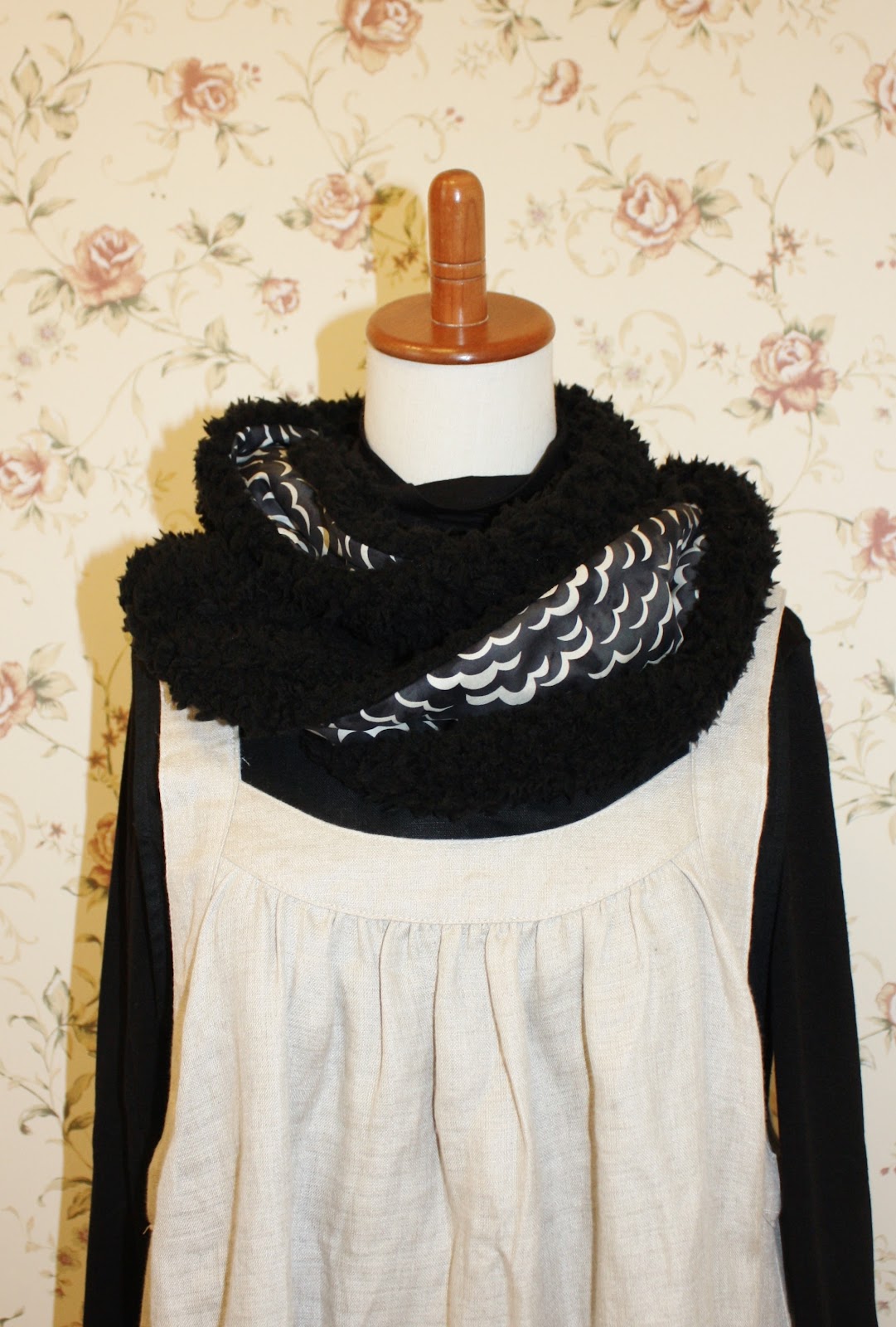 ということで、こちらでお作りするネックウォーマーやスヌードは基本エレガント系のブラックのものが多くなります。