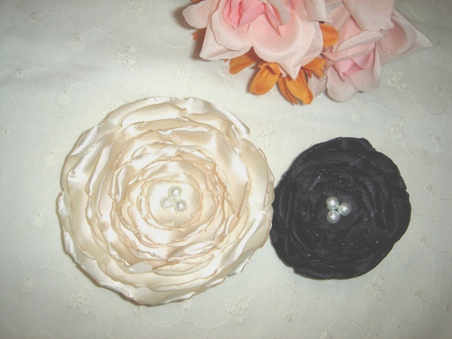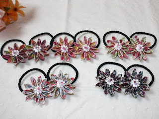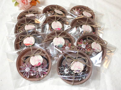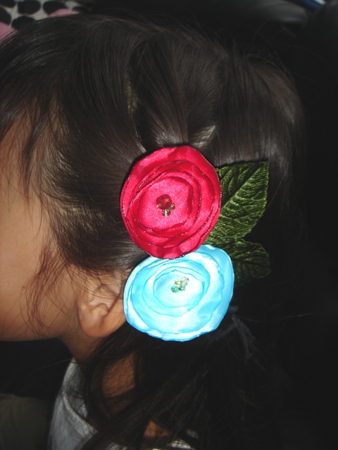 ピンク系の布に合わせて、パーツもピンクと白、クリアで統一。