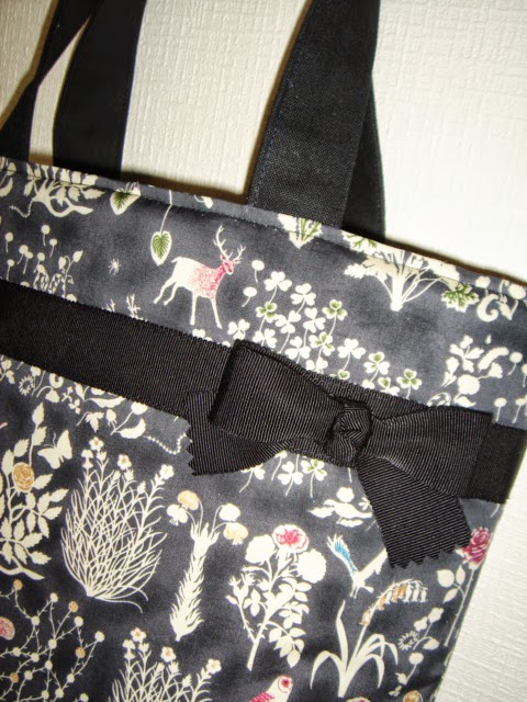 先日発売になったばかりのホビーラ限定カラーの縮小版「Yoshie」と黒のキャンバス生地を組み合せてトートバックを作りました。